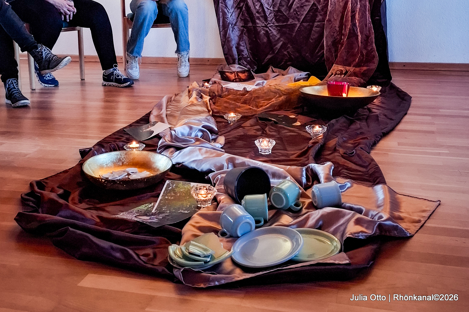 Sehr gut besucht war die Kunstperformance „Blätterfall“ im Museum Modern Art. Passend zur Wandinstallation „Der Goldrausch“ des Künstlers Beat Breitenstein wirbelten am Sonntag 260 vergoldete und naturbelassene Eichenblätter von der Empore des Museums und segelten aus drei Richtungen sanft in die Raummitte.